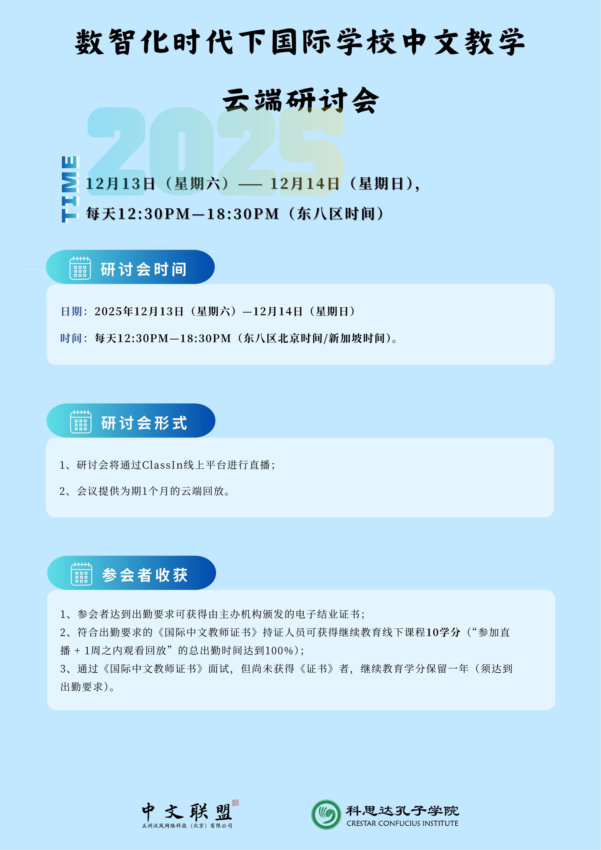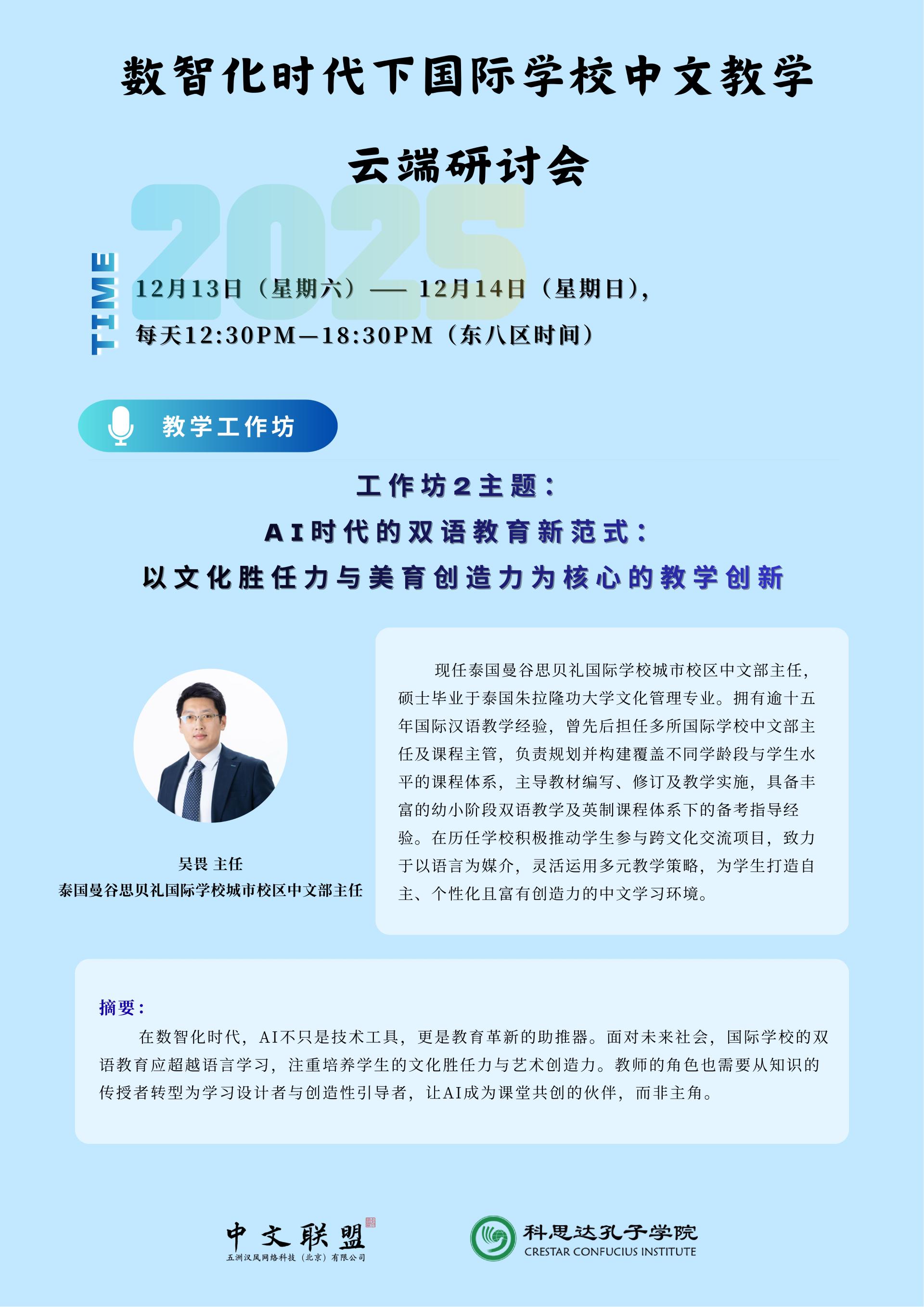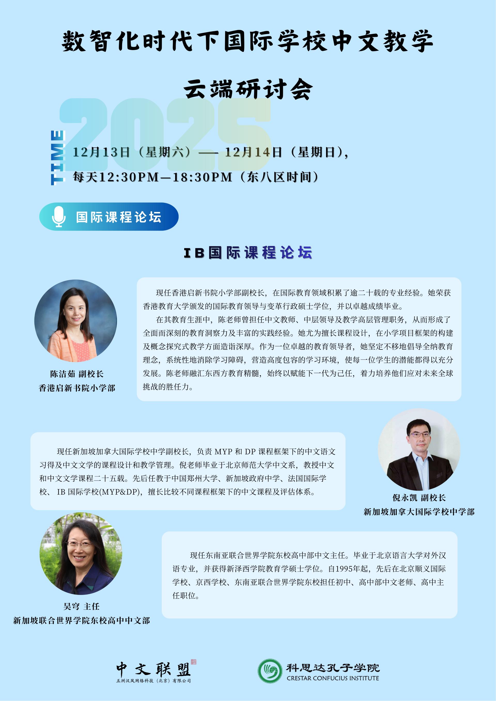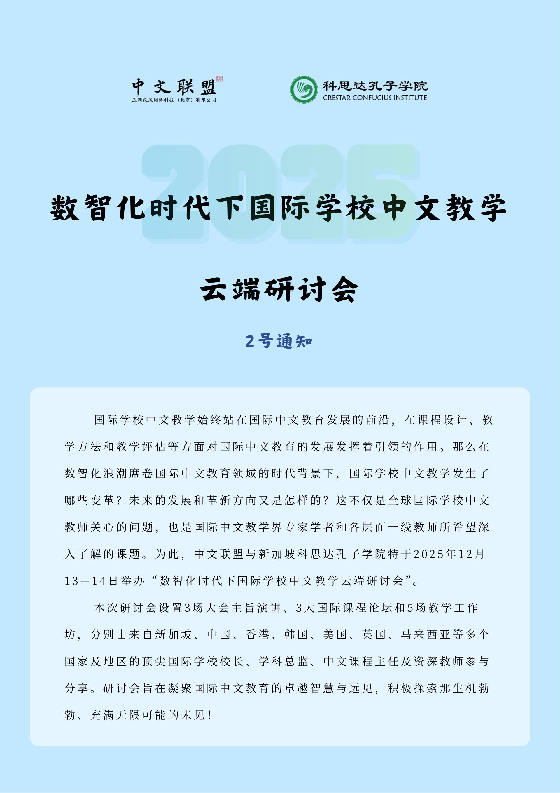 数智化时代下国际学校中文教学云端研讨会 二号通知