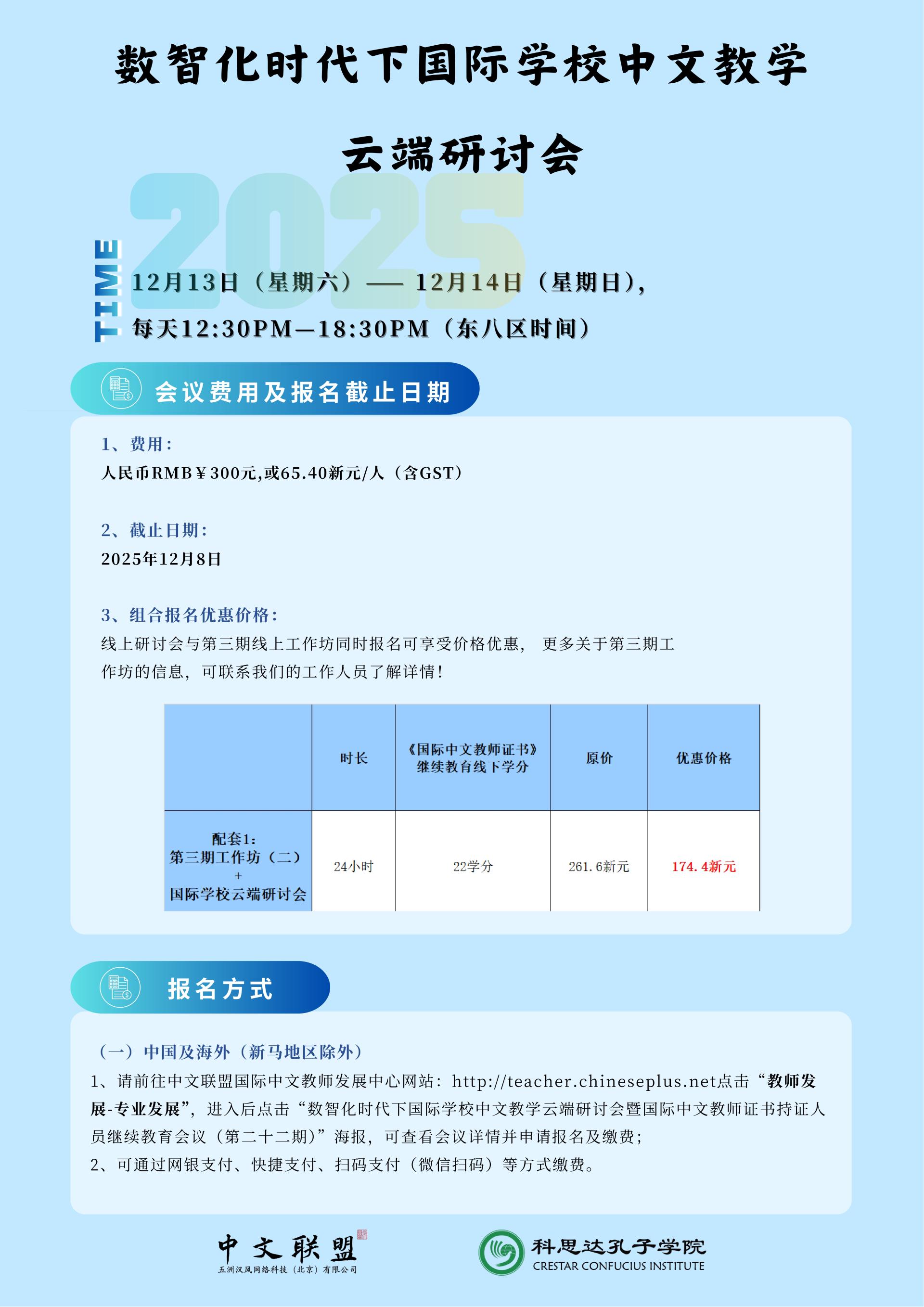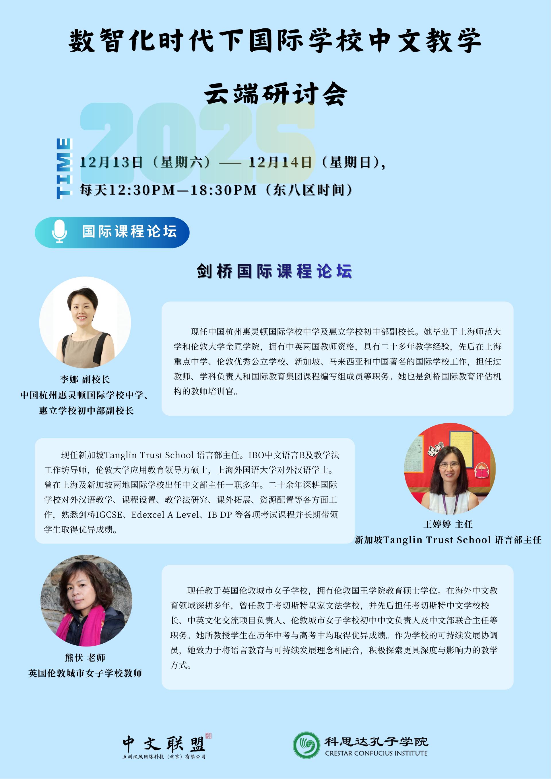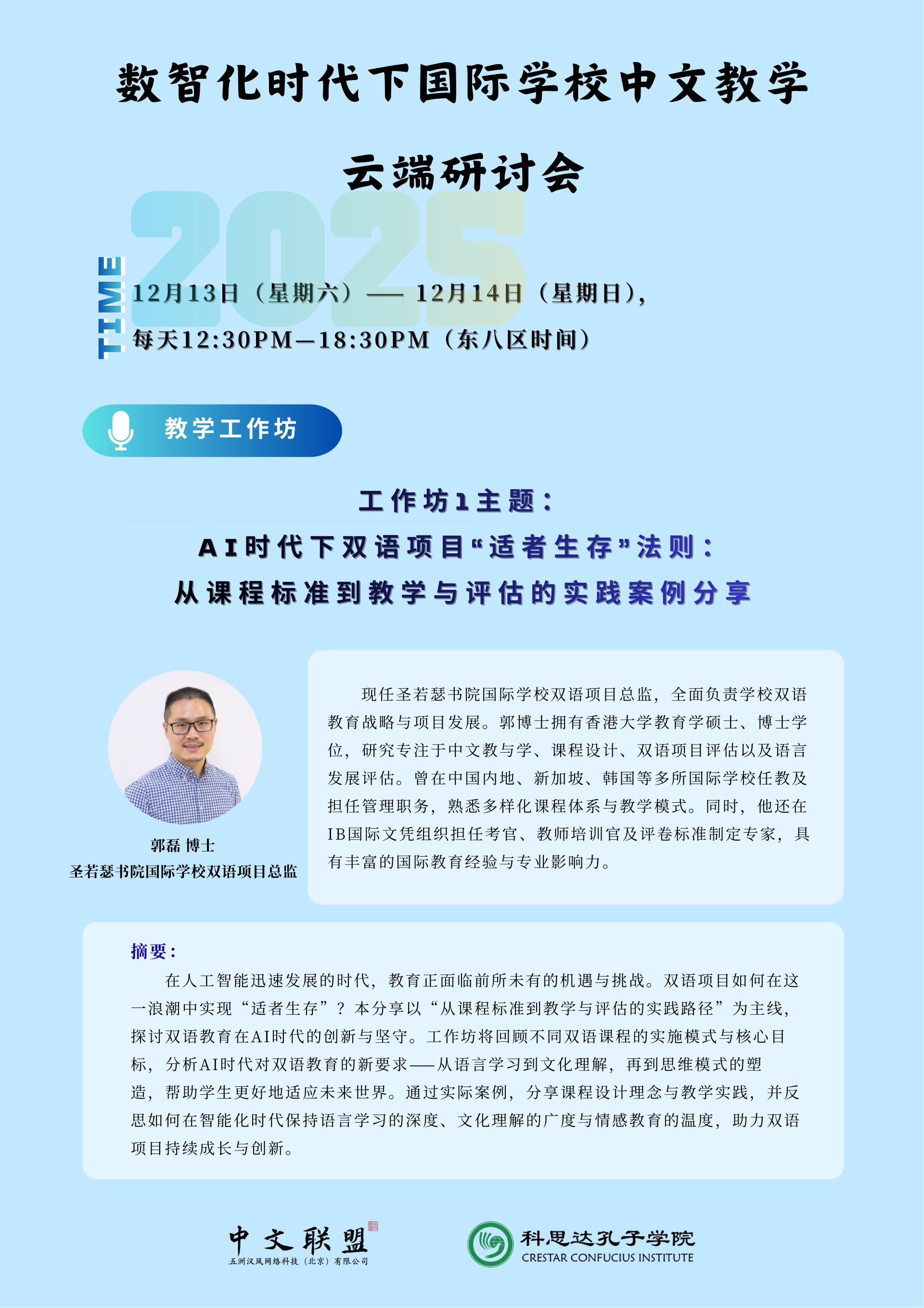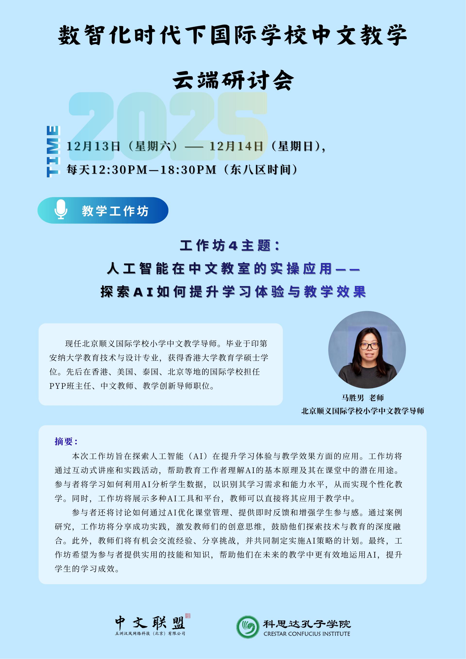 数智化时代下国际学校中文教学云端研讨会 二号通知