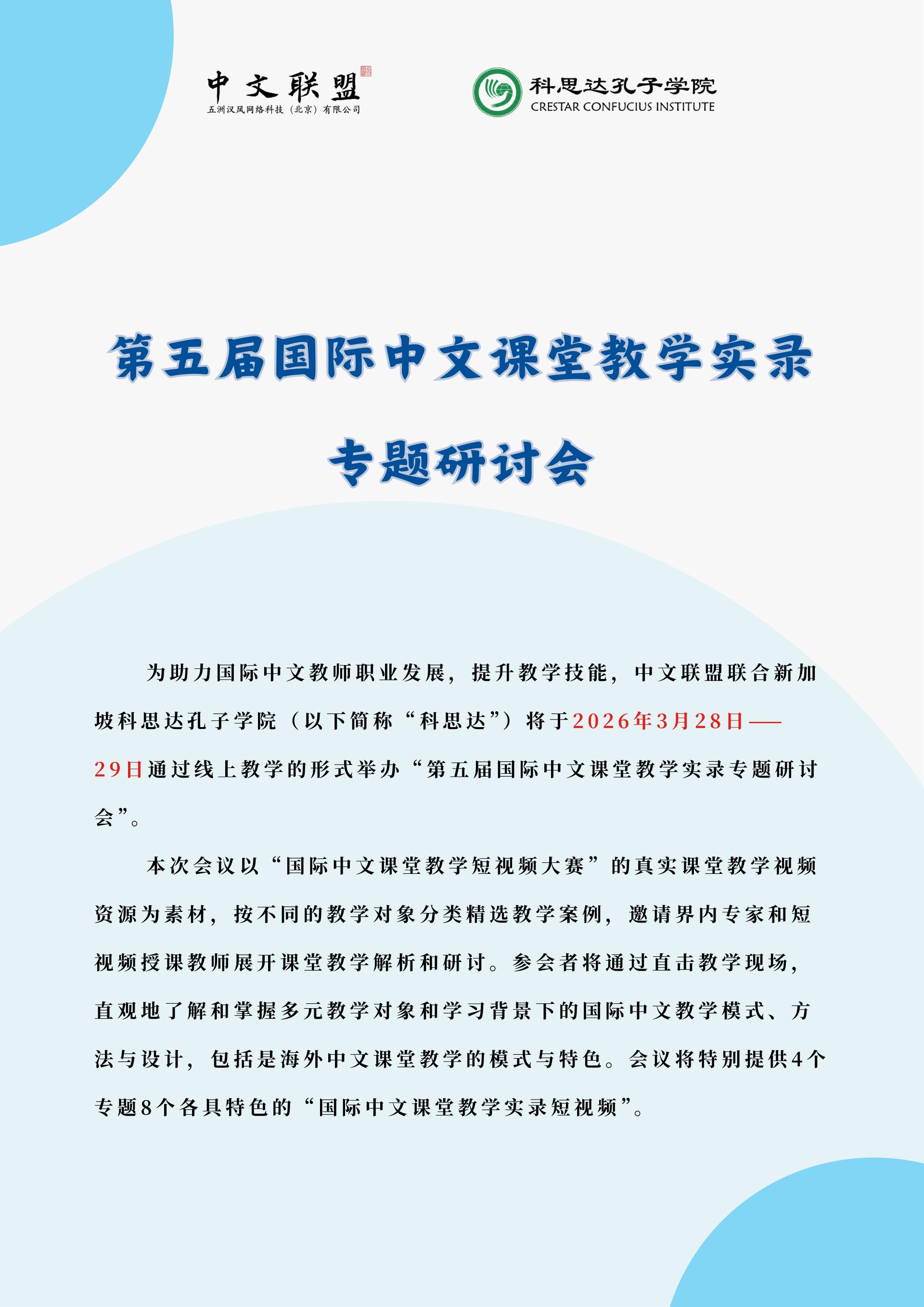 第五届国际中文课堂教学实录专题研讨会